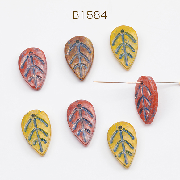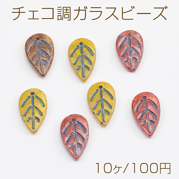 チェコ調ガラスビーズ 葉っぱ リーフ チェコガラス風 アンティーク風 カラーランダム 約10×18mm(10ヶ)