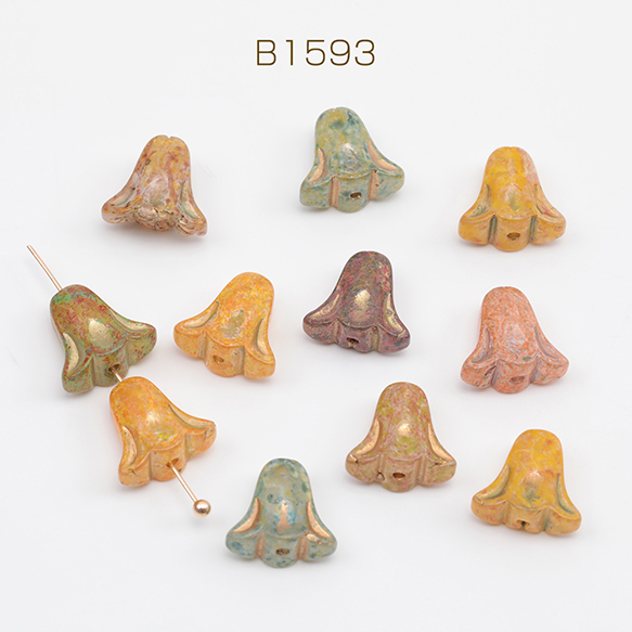 チェコ調ガラスビーズ お花 フラワー チェコガラス風 アンティーク風 カラーランダム 約10×11mm(15ヶ)