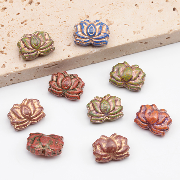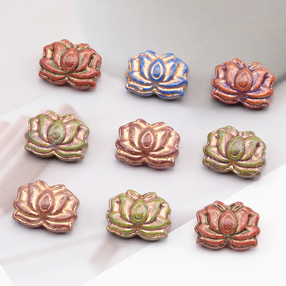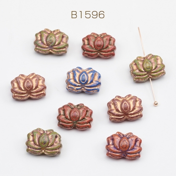 チェコ調ガラスビーズ 蓮の花 花形 フラワービーズ チェコガラス風 アンティーク風 カラーランダム 約11×15mm(10ヶ)
