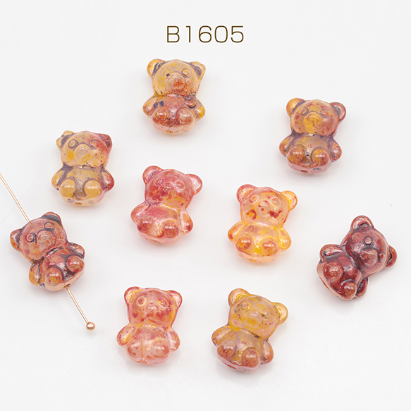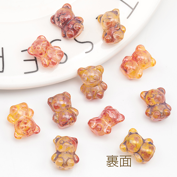 チェコ調ガラスビーズ くま クマ 子熊 テディベア チェコガラス風 アンティーク風 カラーランダム 約12×14mm(10ヶ)