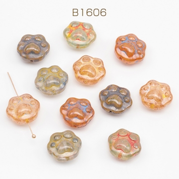 チェコ調ガラスビーズ にくきゅう 肉球 イヌ ネコ チェコガラス風 アンティーク風 カラーランダム 約13×15mm(10ヶ)