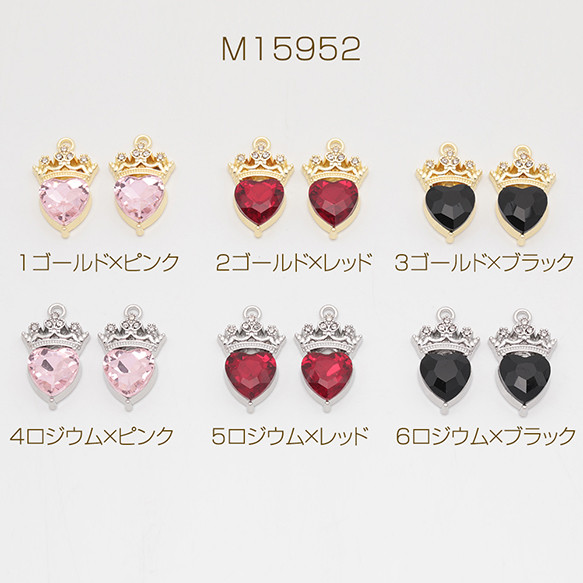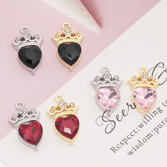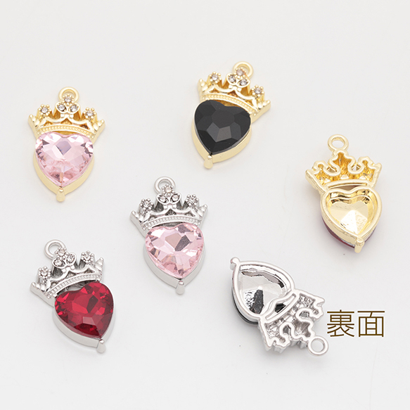 ハートチャーム 王冠 ラインストーン付き ガラスチャーム メタルチャーム 約14×23mm(2ヶ)