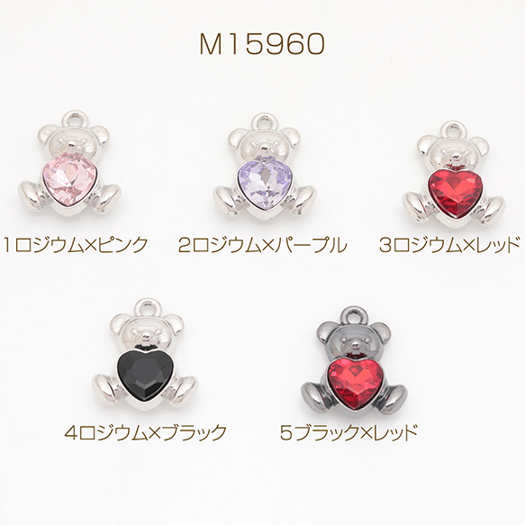 クマチャーム くま クマ 子熊 テディベア ストーン付き 立体 ガラスチャーム メタルチャーム 約16×19mm(2ヶ)