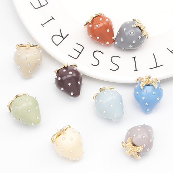 いちごチャーム 2026年トレンドカラー パール付き ストロベリー イチゴ 苺 アクリルチャーム 樹脂チャーム 約18×23mm(2ヶ)