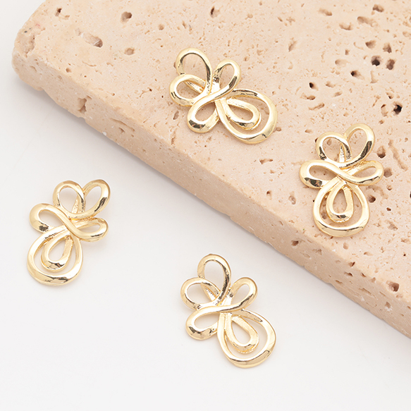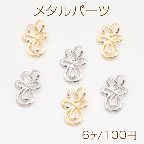 メタルパーツ 結び目デザイン フラワー風 コネクターパーツ 接続金具 カンなし メタルチャーム 約12×17mm(6ヶ)