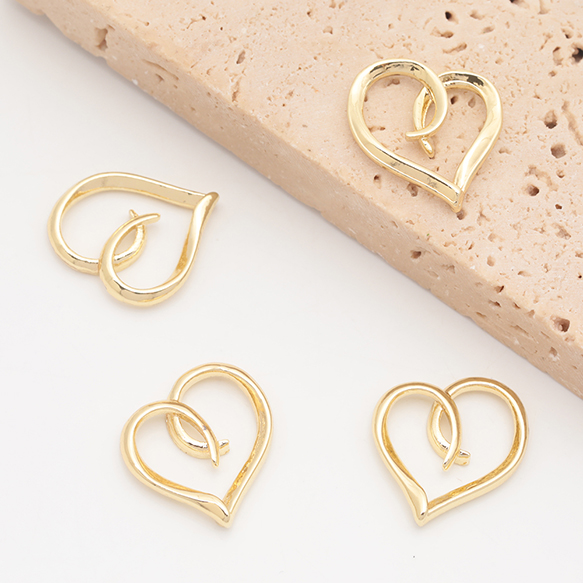 メタルパーツ ハート コネクターパーツ 接続金具 カンなし メタルチャーム 約15×16mm(6ヶ)