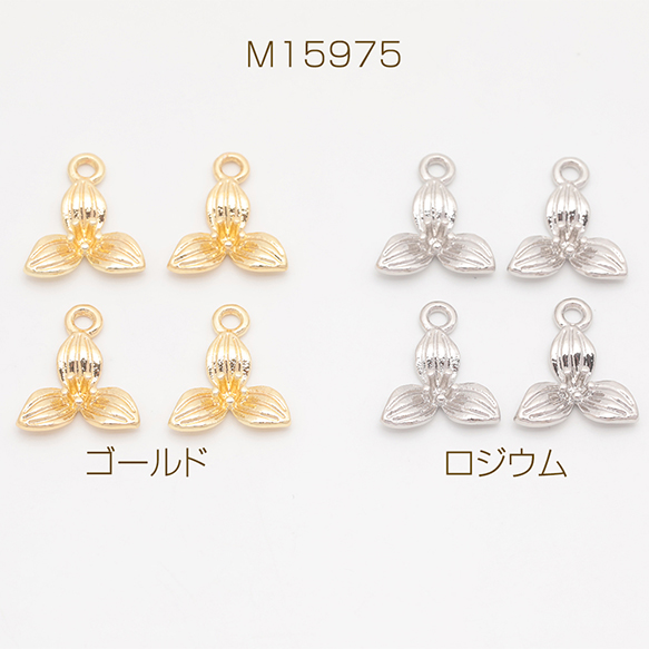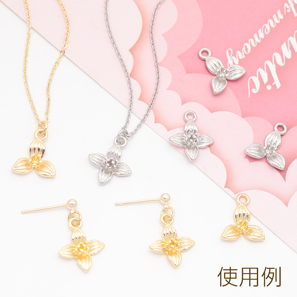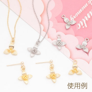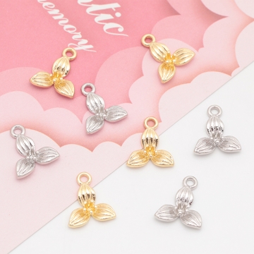 フラワーチャーム 三弁花 三つ葉 お花 立体 メタルチャーム 約12×14mm(6ヶ)