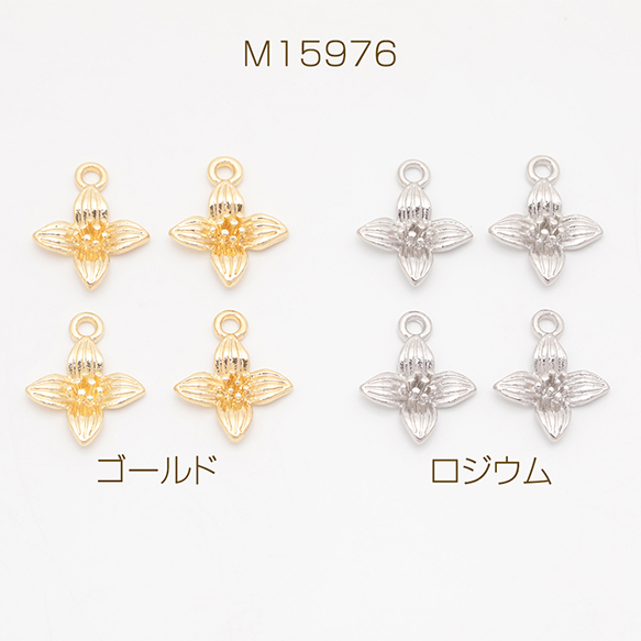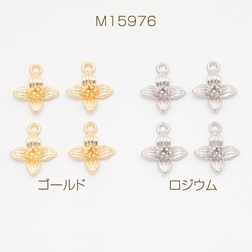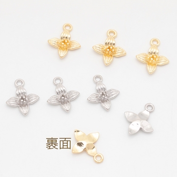 フラワーチャーム 四弁花 四つ葉 お花 立体 メタルチャーム 約13×15mm(6ヶ)