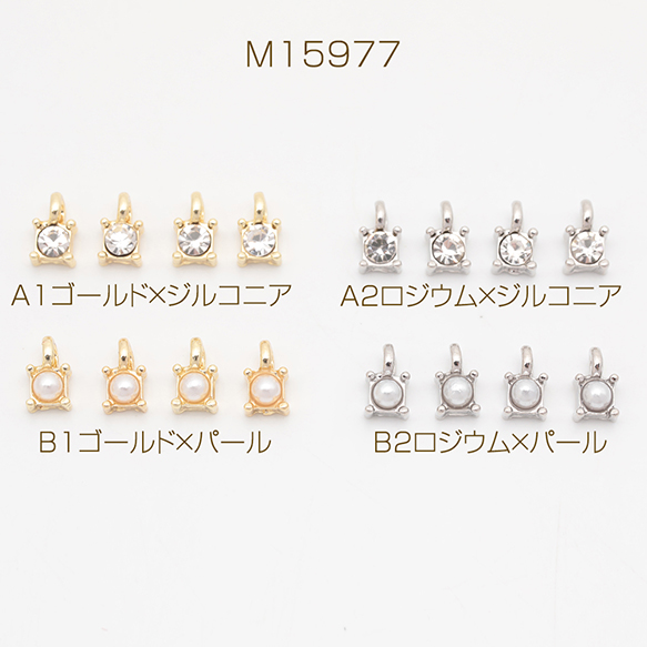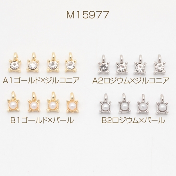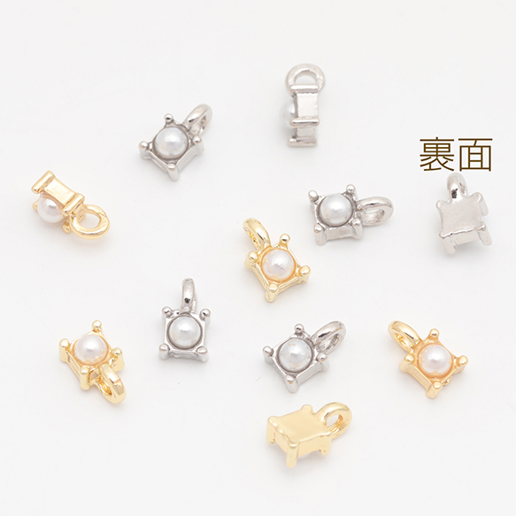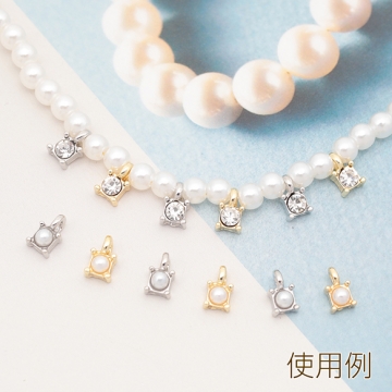 スペーサービーズ 一粒 ストーン/ABSパール付き メタルチャーム メタルビーズ 約4×6.5mm(6ヶ)