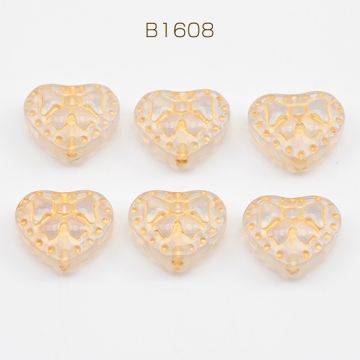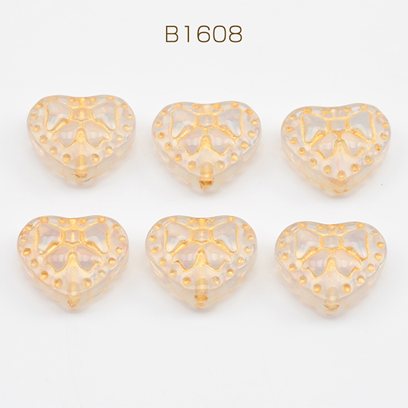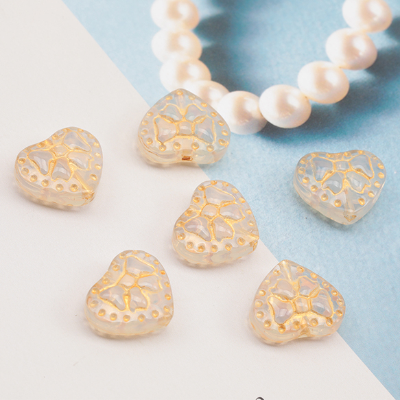ガラスビーズ 金模様 ハート アンティーク風 半透明 乳白色 縦穴 半クリアビーズ 約14×16mm(20ヶ)