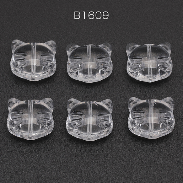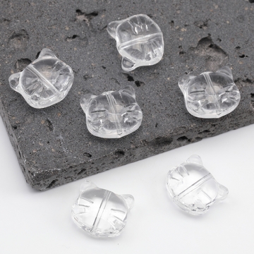 ガラスビーズ 猫のあたま ねこ ネコ 透明 縦穴 クリアビーズ 約13×14mm(20ヶ)