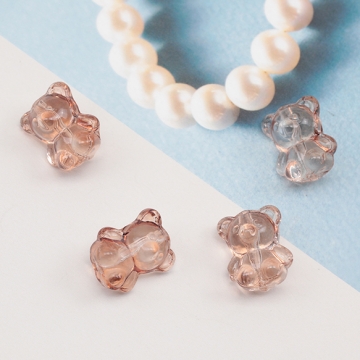 ガラスビーズ 立体 くま クマ 熊 テディベア クリアブラウン 透明 縦穴 クリアビーズ 約12×15mm(20ヶ)