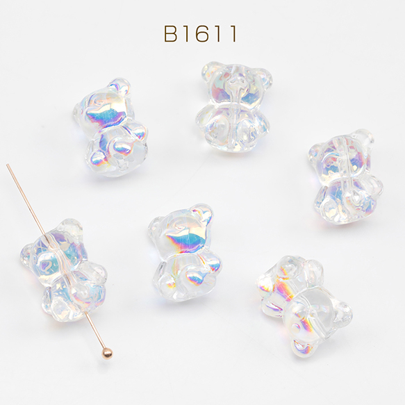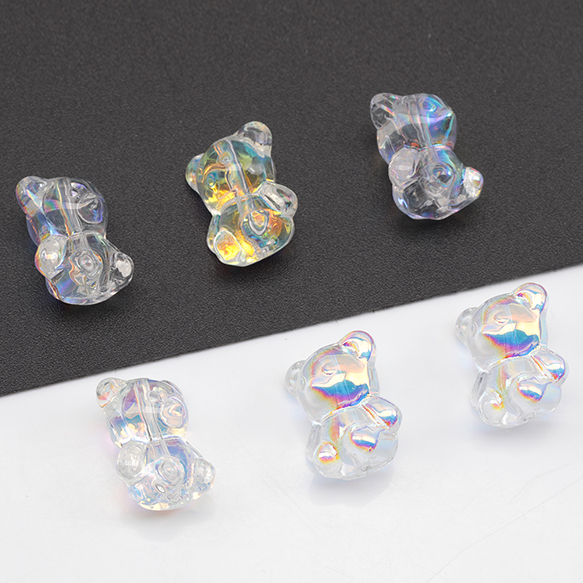 ガラスビーズ 立体 くま クマ 熊 テディベア ABカラー 透明 縦穴 クリアビーズ 約12×15mm(15ヶ)