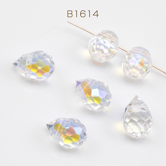 ガラスビーズ しずく型 クリスタルカット ABカラー 電気メッキ加工 横穴 ドロップビーズ 約8×11mm(15ヶ)