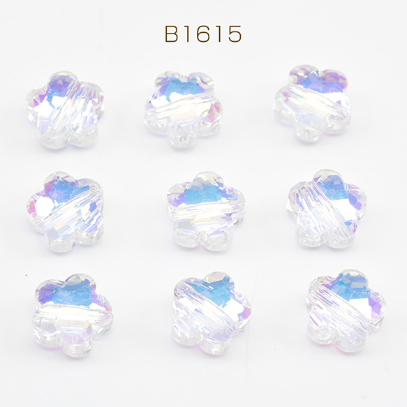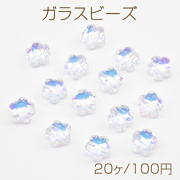 ガラスビーズ 梅の花 クリスタルカット ABカラー 電気メッキ加工 横穴 フラワービーズ 約8mm(20ヶ)