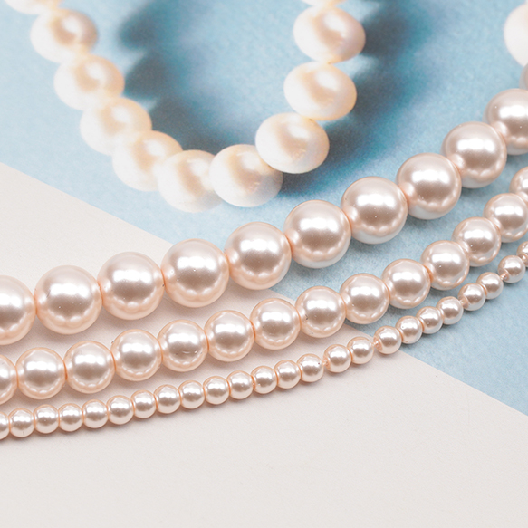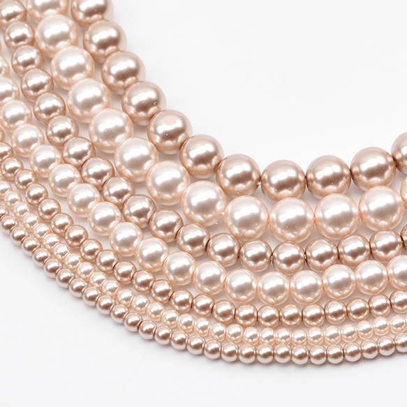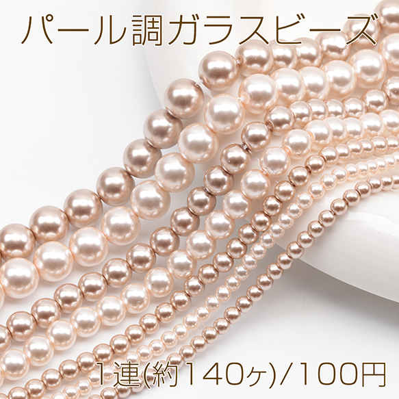 パール調ガラスビーズ ラウンド パール風 ライトブラウン 丸形ビーズ 約3mm(1連(約140ヶ))