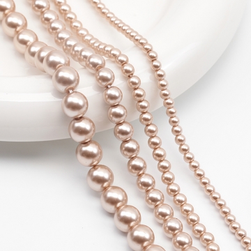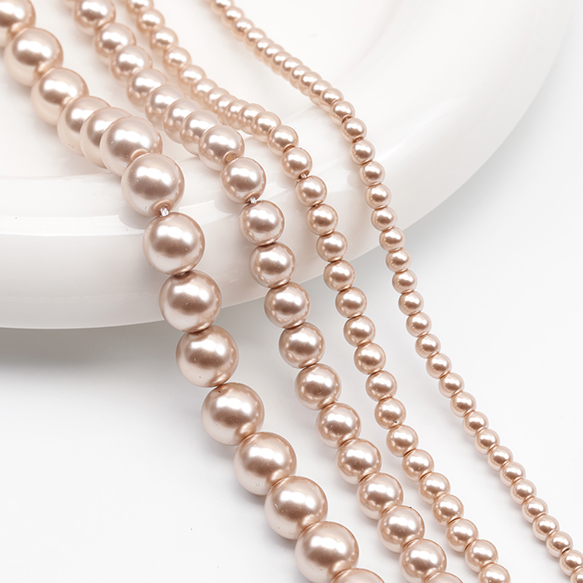 パール調ガラスビーズ ラウンド パール風 ライトブラウン 丸形ビーズ 約8mm(1連(約50ヶ))