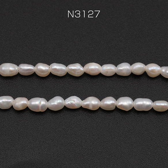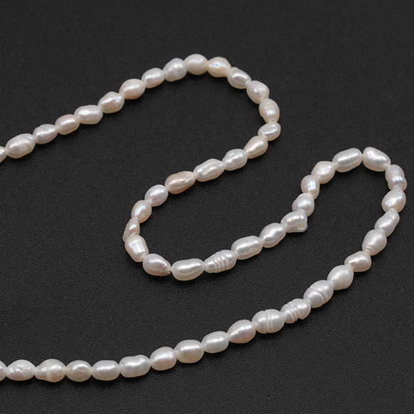 淡水パールビーズ 不規則オーバル 天然素材 ※傷・スジ・変形等含む 約3-4mm(1連(約78ヶ))