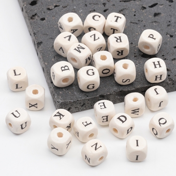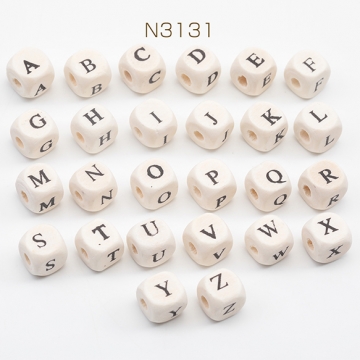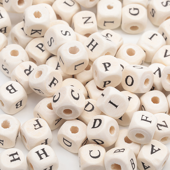 ウッドビーズ 木製 サイコロ型 角丸 アルファベット ミックスビーズ ※文字はランダム 約10mm(30ヶ)
