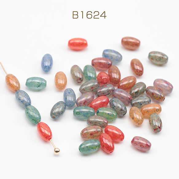 チェコ調ガラスビーズ ミニ オーバル 楕円形 チェコガラス風 アンティーク風 カラーランダム 約3×6mm(30ヶ)