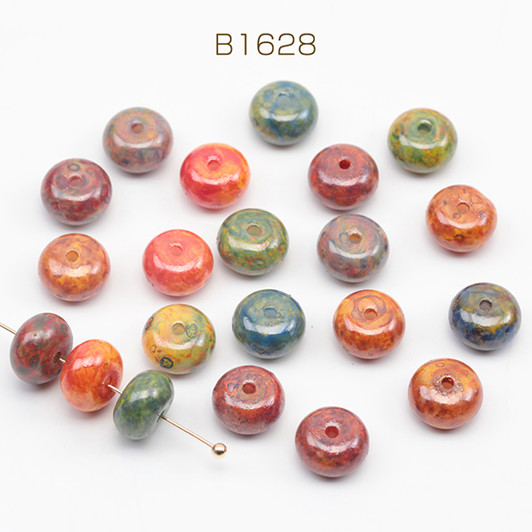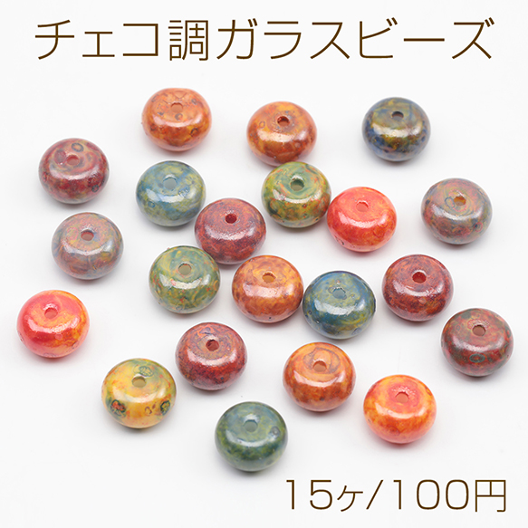 チェコ調ガラスビーズ そろばん型 チェコガラス風 アンティーク風 カラーランダム 約5×8mm(15ヶ)