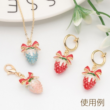 いちごチャーム リボン付き エポチャーム ストロベリー イチゴ 苺 フルーツチャーム 樹脂チャーム 約13×18mm(2ヶ)