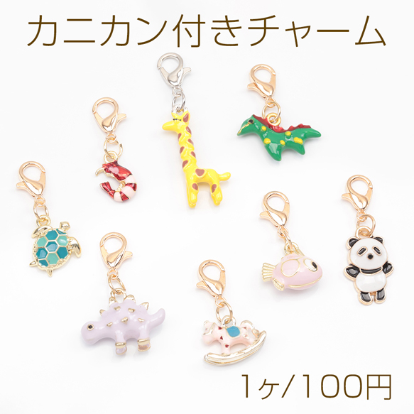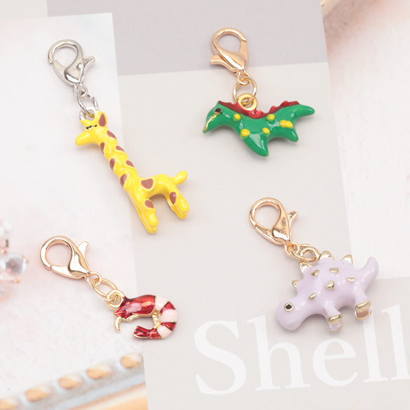 カニカン付きチャーム 海の生き物 恐竜 パンダ キリン アニマル 動物チャーム マスクチャーム ストラップチャーム(1ヶ)