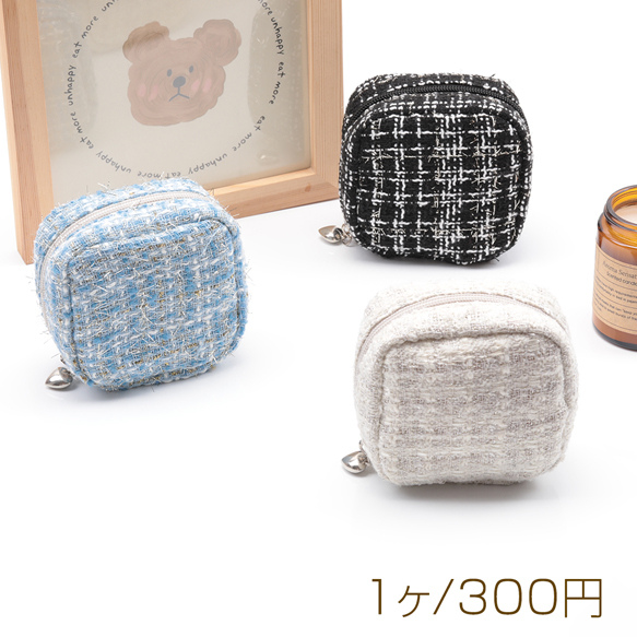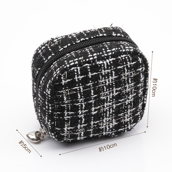 コスメポーチ スクエア 小型 ツイード生地 化粧ポーチ コスメバッグ ミニポーチ 小物入れ 約5×10×10cm(1ヶ)