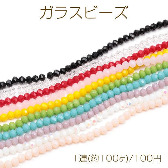 ガラスビーズ 多面カット キラキラ シンプル 全10色 約4mm(1連(約100ヶ))