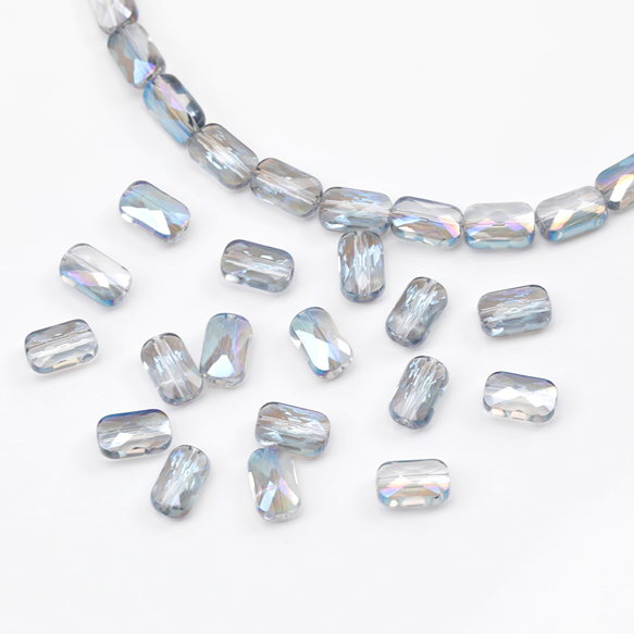 ガラスビーズ フラット 長方形 多面カット キラキラ シンプル クリア 約4×7mm(1連(約75ヶ))