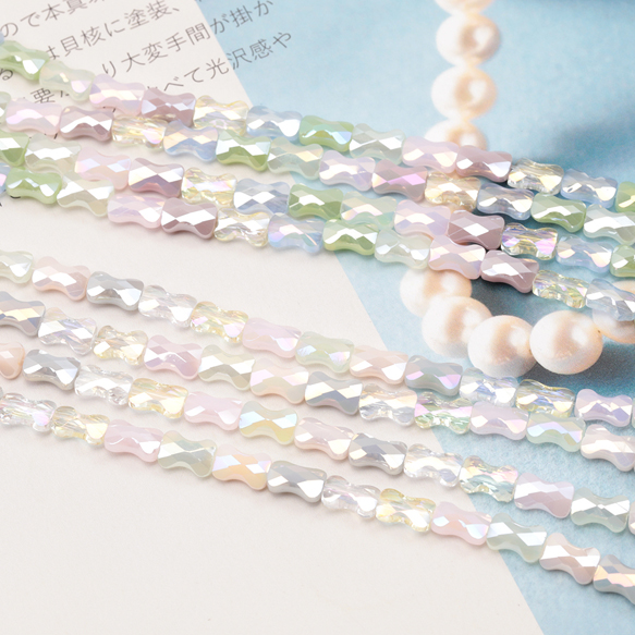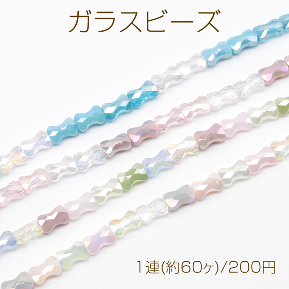 ガラスビーズ 多面カット キラキラ MIXカラー 全4色 約4×7mm(1連(約60ヶ))