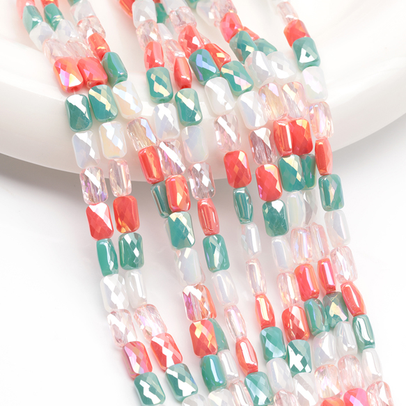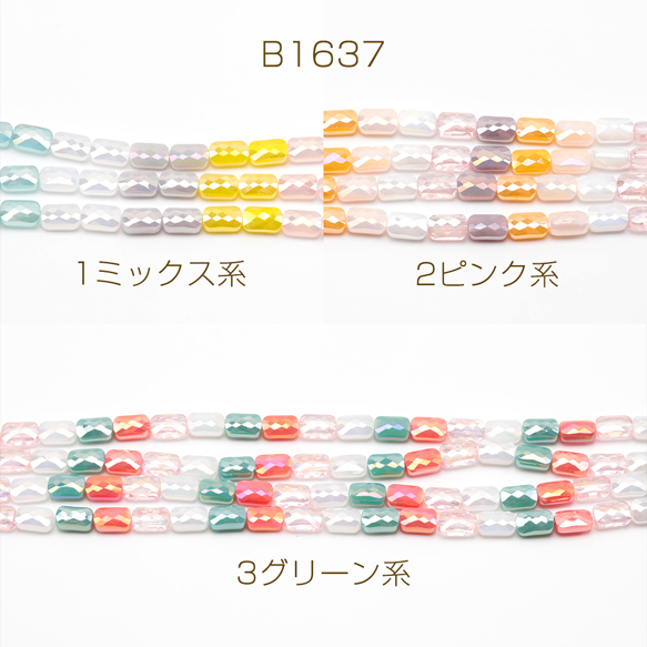 ガラスビーズ 長方形 多面カット キラキラ 全3色 約4×7mm(1連(約60ヶ))