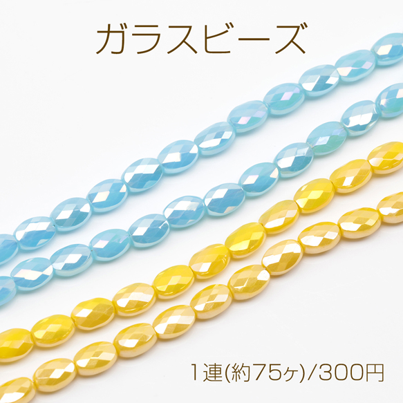ガラスビーズ オーバル 多面カット キラキラ 約4×6mm(1連(約75ヶ))