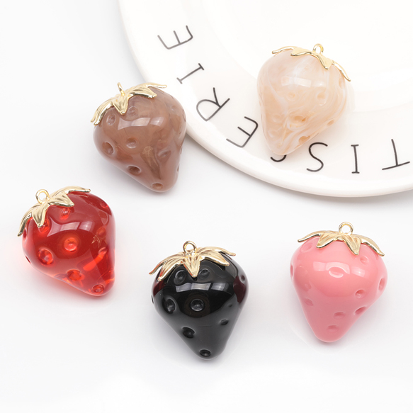 いちごチャーム トレンドカラー ストロベリー イチゴ 苺 樹脂チャーム 約30×38mm(1ヶ)
