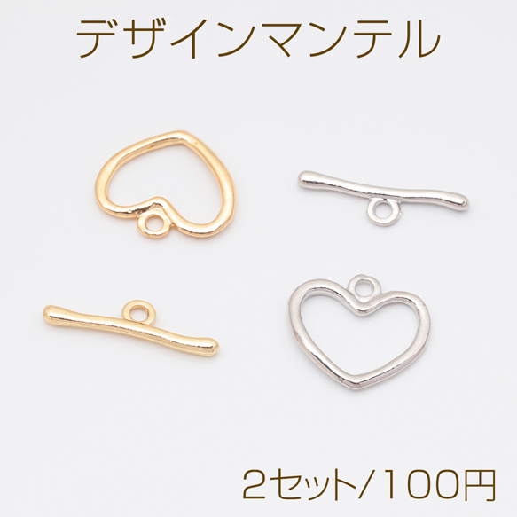 デザインマンテル ハート 留め具 ネックレス ブレスレット 約14×16mm&約20mm (2セット)
