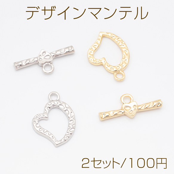 デザインマンテル ハート 花 留め具 ネックレス ブレスレット 約16×22mm&約24mm (2セット)