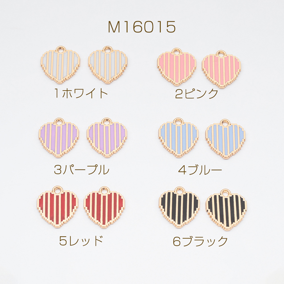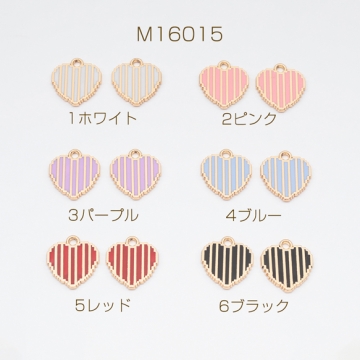 エポチャーム ストライプ柄 ドット風ハート かわいい カン付き メタルチャーム 約13×14mm(4ヶ)
