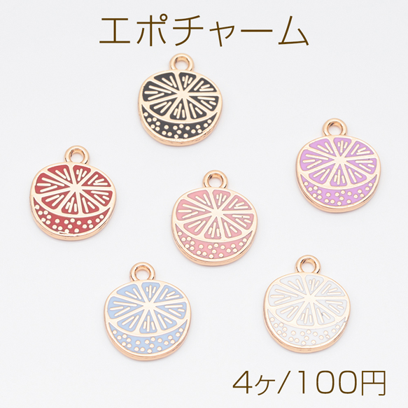 エポチャーム オレンジ 果物 フルーツ プレートチャーム メタルチャーム 約12×14mm(4ヶ)