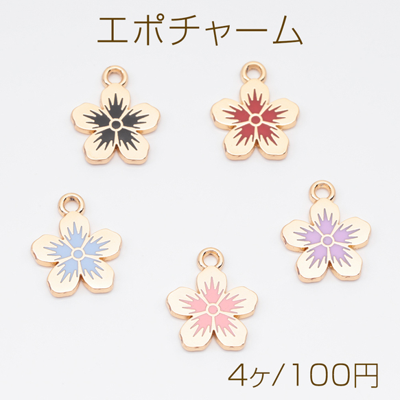 エポチャーム フラワー お花 プレートチャーム メタルチャーム 約12×14mm(4ヶ)