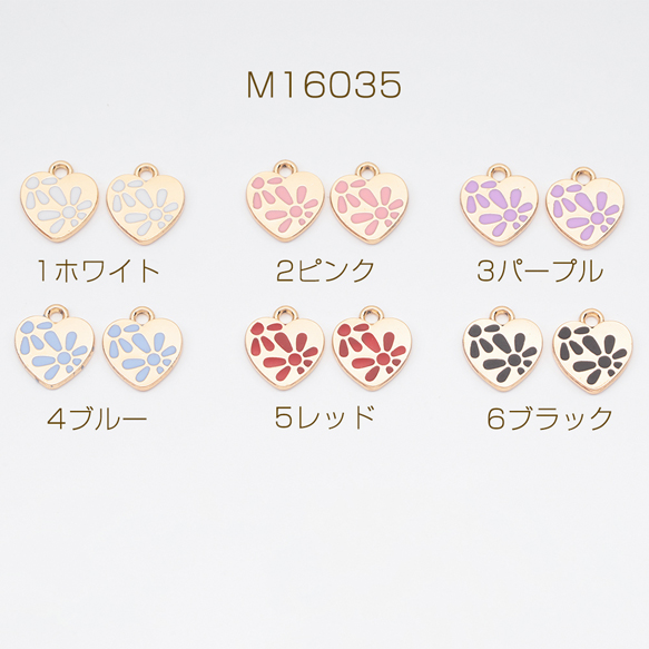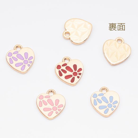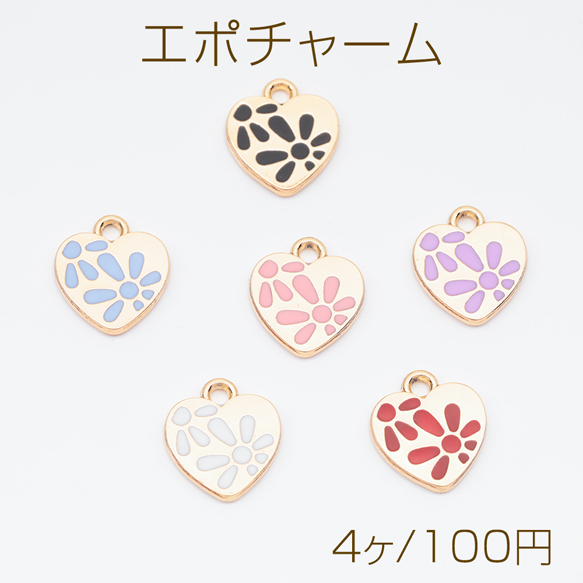 エポチャーム ハート 花模様 プレートチャーム メタルチャーム 約11×12mm(4ヶ)