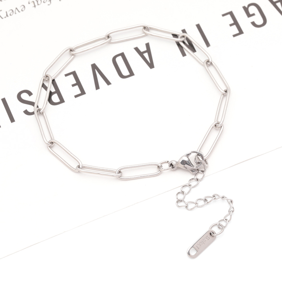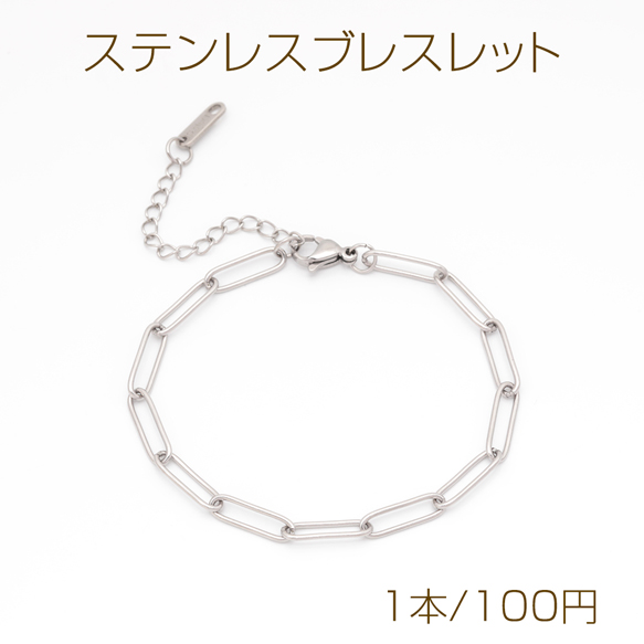 ステンレスブレスレット 角丸ロングオーバル デザインチェーン シルバーカラー 長さ約18+6cm(幅約4.5mm)(1本)