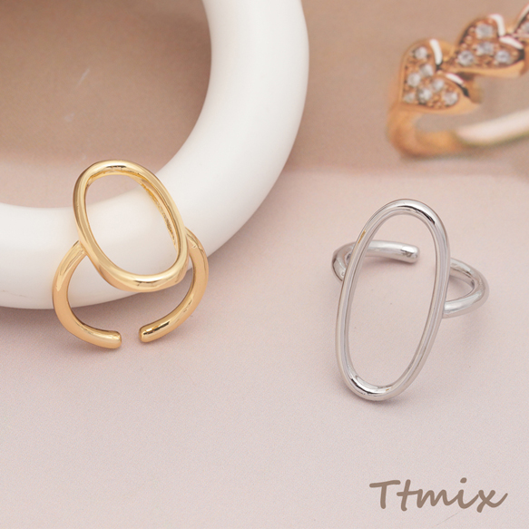デザインリング オーバル 指輪 メタル オープンリング 10号内径約16mm(幅約27mm)(1ヶ)