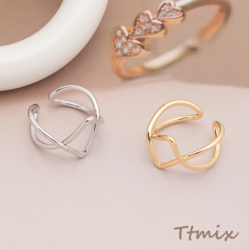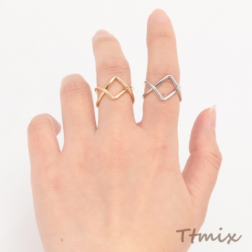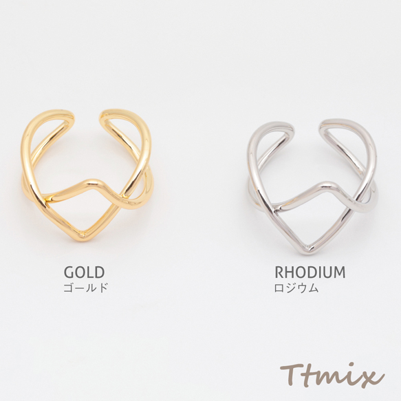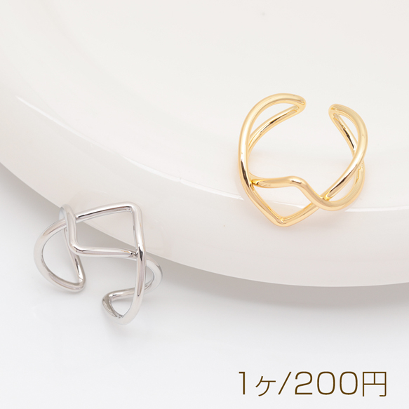 デザインリング クロス ウェーブ 指輪 メタル オープンリング 13号内径約17mm(幅約13mm)(1ヶ)