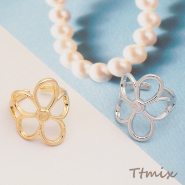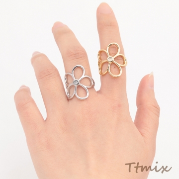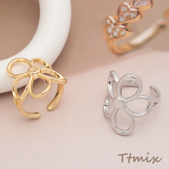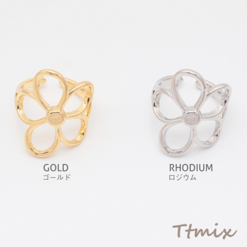 デザインリング 透かしフラワー 指輪 メタル オープンリング 15号内径約17.7mm(幅約26mm)(1ヶ)