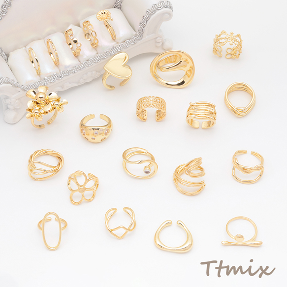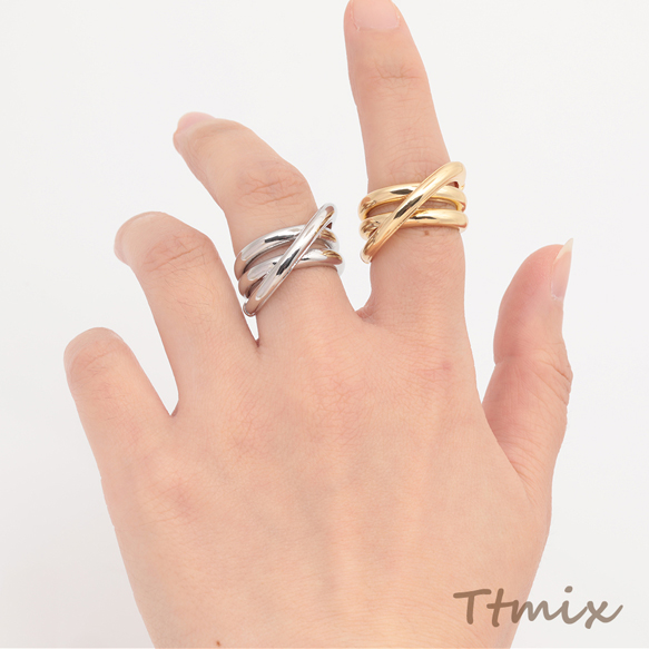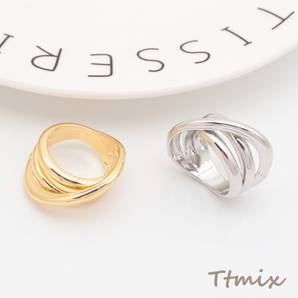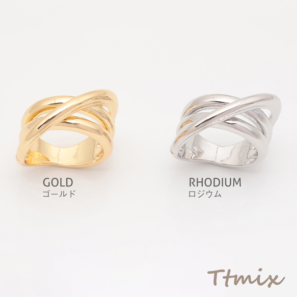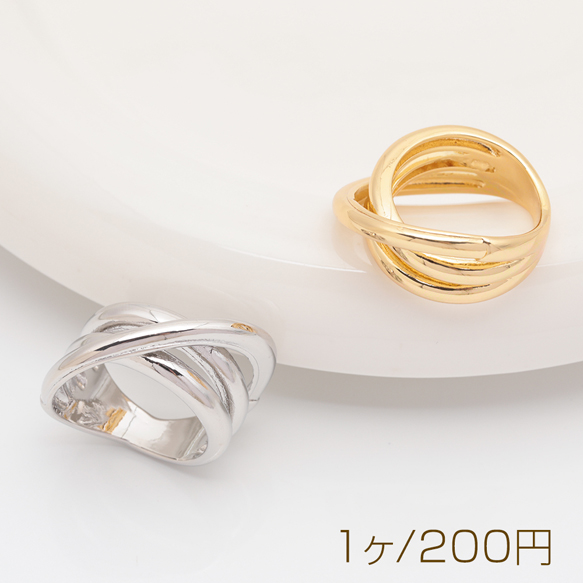 デザインリング 三連クロス 指輪 メタル オープンリング 13号内径約17mm(幅約13mm)(1ヶ)