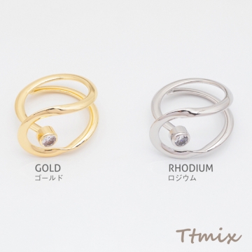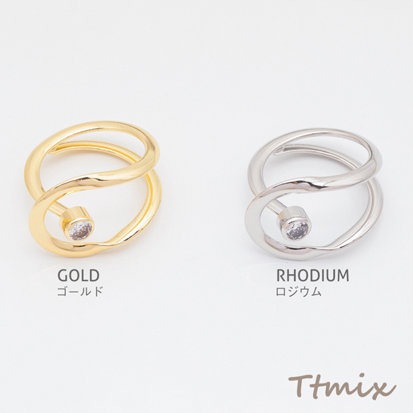 デザインリング U字 ジルコニア付き 指輪 メタル オープンリング 13号内径約17mm(幅約17mm)(1ヶ)