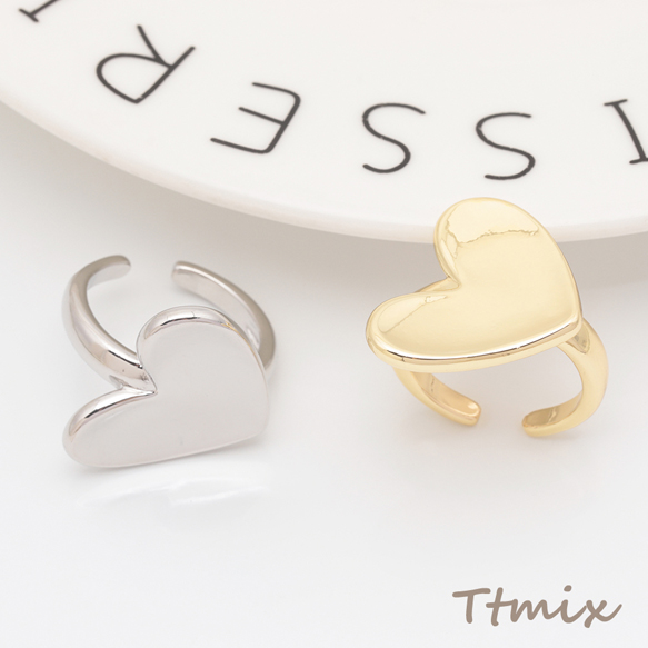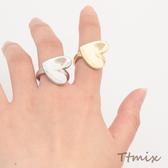 デザインリング 大きめハート 指輪 メタル オープンリング 15号内径約17.7mm(幅約23mm)(1ヶ)