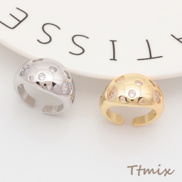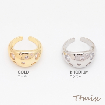 デザインリング 太め ジルコニア付き 指輪 メタル オープンリング 13号内径約17mm(幅約14mm)(1ヶ)