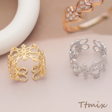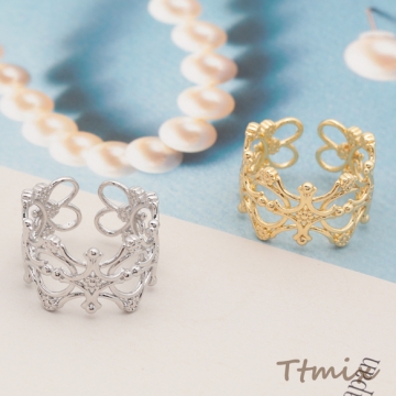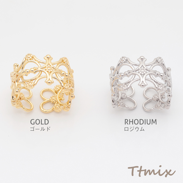 デザインリング 透かし模様 クロス フラワー 指輪 メタル オープンリング 15号内径約17.7mm(幅約13mm)(1ヶ)