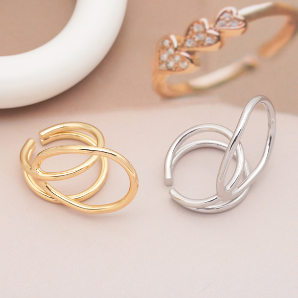 卸売デザインリング 幾何学 指輪 メタル オープンリング 13号内径約17mm(幅約20mm)(1ヶ)